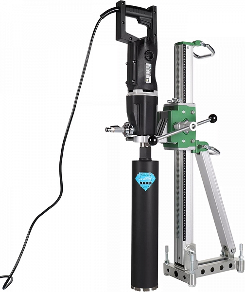Дрель для алмазного сверления Bycon DMP-132D (Байкон ДМП-132Д) – алмазная дрель для алмазного бурения отверстий Ø 10 – 132 мм в железобетоне и Ø 10 – 162 мм в кирпиче и "легком" бетоне; как с водой, так и всухую; как с использованием станины, так и "с рук"; для профессионального использования.