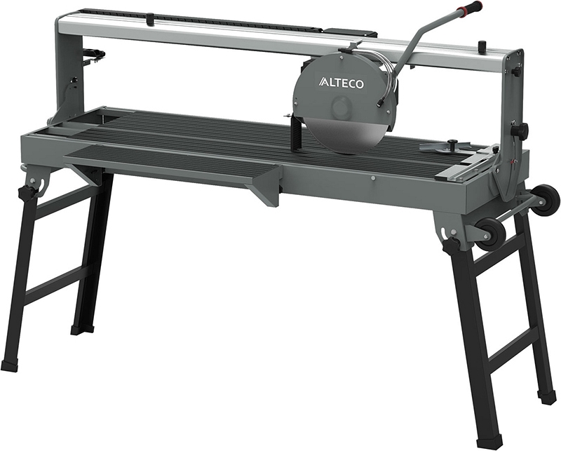 Электрический плиткорез Alteco PTC 1500-300 (Альтеко ПТЦ 1500-300) – эффективный станок для быстрого и качественного распила плитки из керамогранита и керамики, длиной до 1250 мм, толщиной до 66 мм при резке под углом 90°, толщиной до 53 мм при резке под углом 45°, различными дисками в зависимости от материала, с подачей воды.