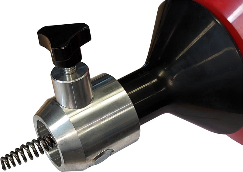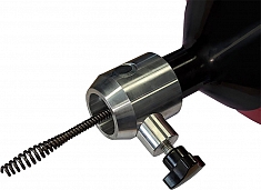 - Удобное устройство автоматической подачи и фиксации прочистной спирали позволяет легко работать в стесненных условиях и труднодоступных местах: оператор может регулировать поступательное движение прочистной спирали и скорость вращения при помощи кнопки привода