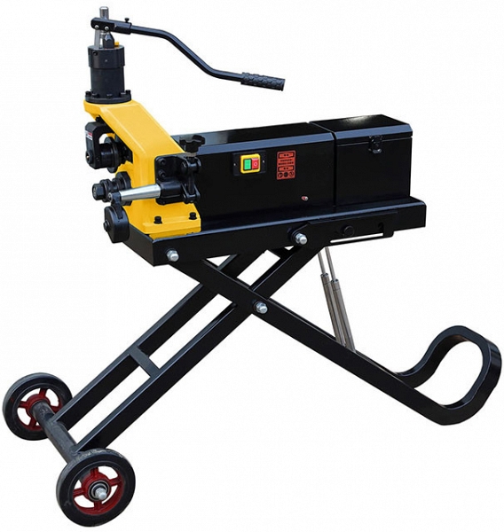 - Эффективная интегрированная тележка с гидравлической системой складывания для быстрой установки под накатку желобков до 12" – более удобная транспортировка одним оператором!