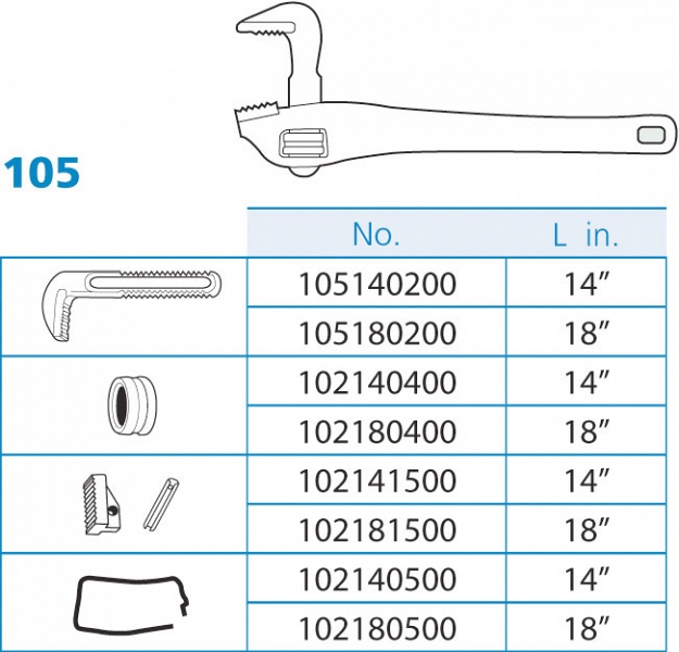 - На 40% легче аналогичных коленчатых трубных ключей, при этом исключительно долговечен