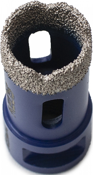 Коронка алмазная по керамограниту Keos Professional Vacuum Brazed M14 25 мм (Кеос Профессионал Вакуум Брейзед М14 25 мм) – корончатое сверло для сверления отверстий Ø 25 мм в керамической плитке, керамограните, граните, мраморе и других видах камня, как на сухую, так и с охлаждающими жидкостями, с использованием сетевых электрических и аккумуляторных УШМ.