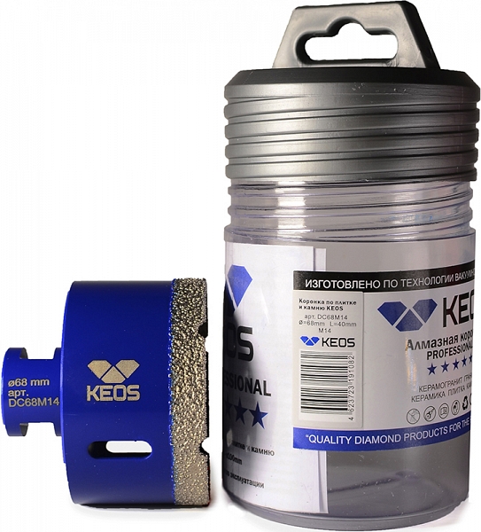 Цена и технические характеристики коронки алмазной по керамограниту Keos Professional Vacuum Brazed M14 68 мм: