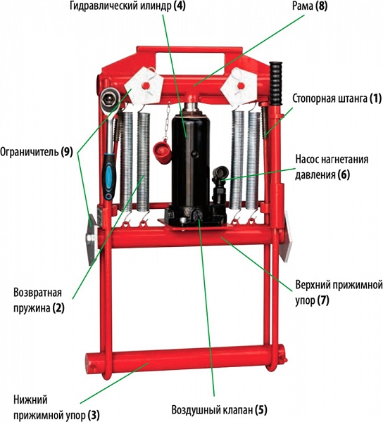– Передавливание необходимо прекратить при касании нижней площадки ограничителя нижнего прижимного упора