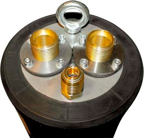 Проходная пневмозаглушка с 2 каналами для испытаний трубопроводов Vetter PDK 4/7 FLEX (Веттер ПДК 4/7 ФЛЕКС) – многоразмерная цилиндрическая пневматическая заглушка с 2 проходами для проведения испытаний на герметичность воздухом или водой (согласно EN 1610), временного перекрытия или дозированного отвода (перенаправления) сточных вод или потока жидкостей трубопроводов канализации при возникновении протечки (изменение трассы), ремонта (реконструкции) и контроля участков трубопровода Ø 40 – 70 мм (1,5" – 2,8").