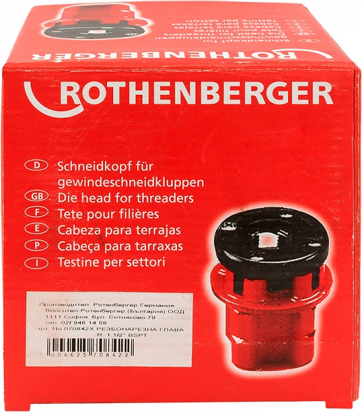Цена и технические характеристики резьбонарезной головки для клуппов Rothenberger Super Cut BSPT R 1 1/2":
