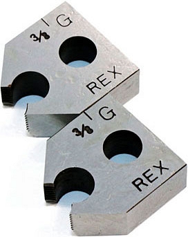 Резьбонарезные гребенки для ручного клуппа Rex 2RG Dies 10A (Рекс 2РГ Дайс 10А) предназначены для нарезки правой трубной конической резьбы BSPT R на трубах Ø 3/8". Используются с ручным резьбонарезным клуппом Rex 2R3 и 2R4.