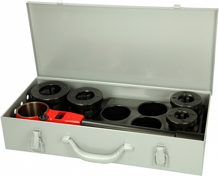 - Храповый рычаг Central 1/8" – 1 1/4" (10 – 40 мм), быстросменные резьбонарезные головки Central R 1/2", 3/4", 1", 1 1/4", в прочном стальном кейсе.