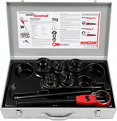 Ручной резьбонарезной трубный клупп Roller Central Set R 3/8"-1/2"-3/4"-1"-1 1/4" (Роллер Централ Сет Р 3/8"-1/2"-3/4"-1"-1 1/4") предназначен для нарезки правой конической трубной резьбы R, согласно ISO 7-1, EN 10226 (DIN 2999, BSPT), на стальных трубах Ø 3/8", 1/2", 3/4", 1", 1 1/4".