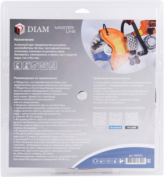 – С водяным охлаждением: предназначен для работы с водяным охлаждением, использование без подачи водяного охлаждения может привести к выходу из строя, за исключением, когда предназначен как для сухой, так и для мокрой резки - Корейские технологии: изготовлен по технологиям и под контролем ведущих производителей алмазного инструмента Южной Кореи, специально по заказу ГК Диам