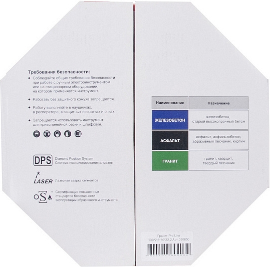 Сегментный алмазный круг Diam Pro Line 1A1RSS Laser Гранит 230 мм (Диам Про Лайн 1А1РСС Лазер Гранит 230 мм) – профессиональный алмазный отрезной диск, произведенный по технологии DPS – позиционирования алмазов в режущем слое, для сухой и мокрой резки гранита, кварца, твердых песчаников на ручном электроинструменте (углошлифовальных машинах, ушм, болгарках, штроборезах, системах резки крупноформатной плитки, бензорезах, электрических резчиках, ручных стенорезных машинах) и плиткорезах электрических, как с подачей охлаждающей жидкости, так и без.