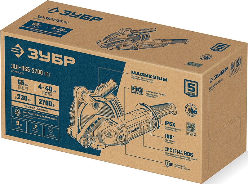 Штроборез Зубр Профессионал ЗШ-П65-2700 ПСТ (Zubr Professional ZSH-P65-2700 PST) – лидер в серии профессиональных штроборезов ЗУБР для выполнения штроб в наиболее прочных бетонах. Максимально возможная мощность, широкие пределы глубины (до 65 мм) и ширины реза, полный набор электронных вспомогательных и защитных систем, высочайший уровень надежности, эргономичная и антивибрационная конструкция – максимум возможностей для Ваших задач.
