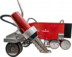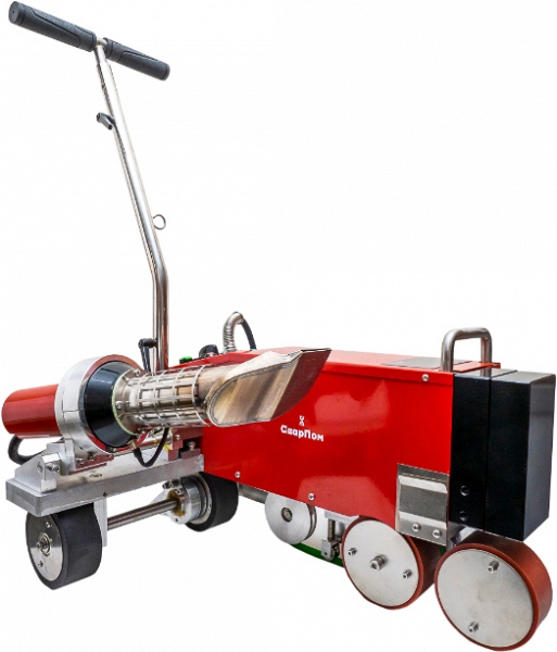 Сварочный автомат горячего воздуха СварПом СП41 40 мм 230 В (SvarPom SP41 40 mm 230 V) – автоматический сварочный аппарат горячего воздуха нового поколения для эффективной сварки внахлест горячим воздухом рулонных полимерных кровельных покрытий и гидроизолирующих мембран из ПВХ, ТПО, синтетического каучука и других гидроизолирующих полимерных кровельных материалов, может быть применен на объектах, где запрещено использование открытого пламени.