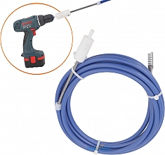 - Трос помещен в пластмассовую оболочку, которая остается неподвижной, когда трос приводится во вращение электрической дрелью