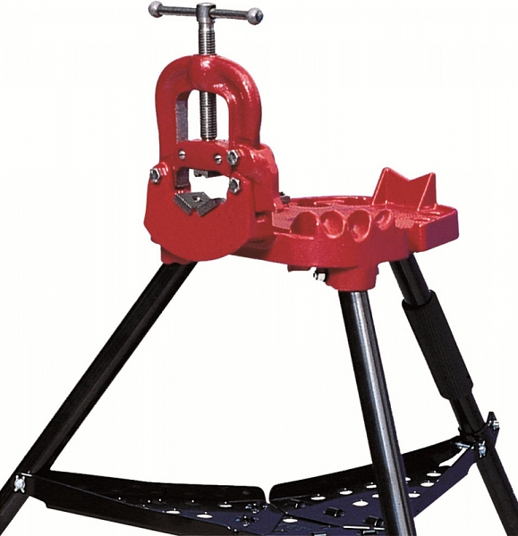 - Укомплектован хомутными трубными тисками для труб с диаметром до 2 1/2", установленными на той же платформе